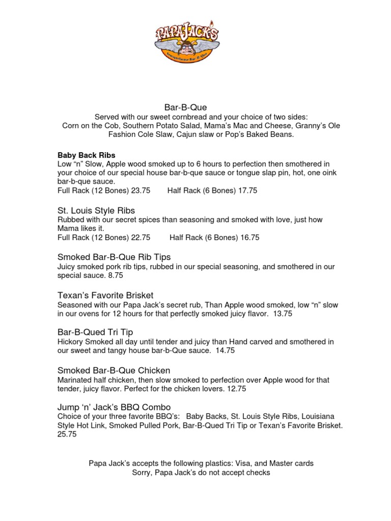 Papa Jacks Menu PDF Barbecue Smoking (Cooking)